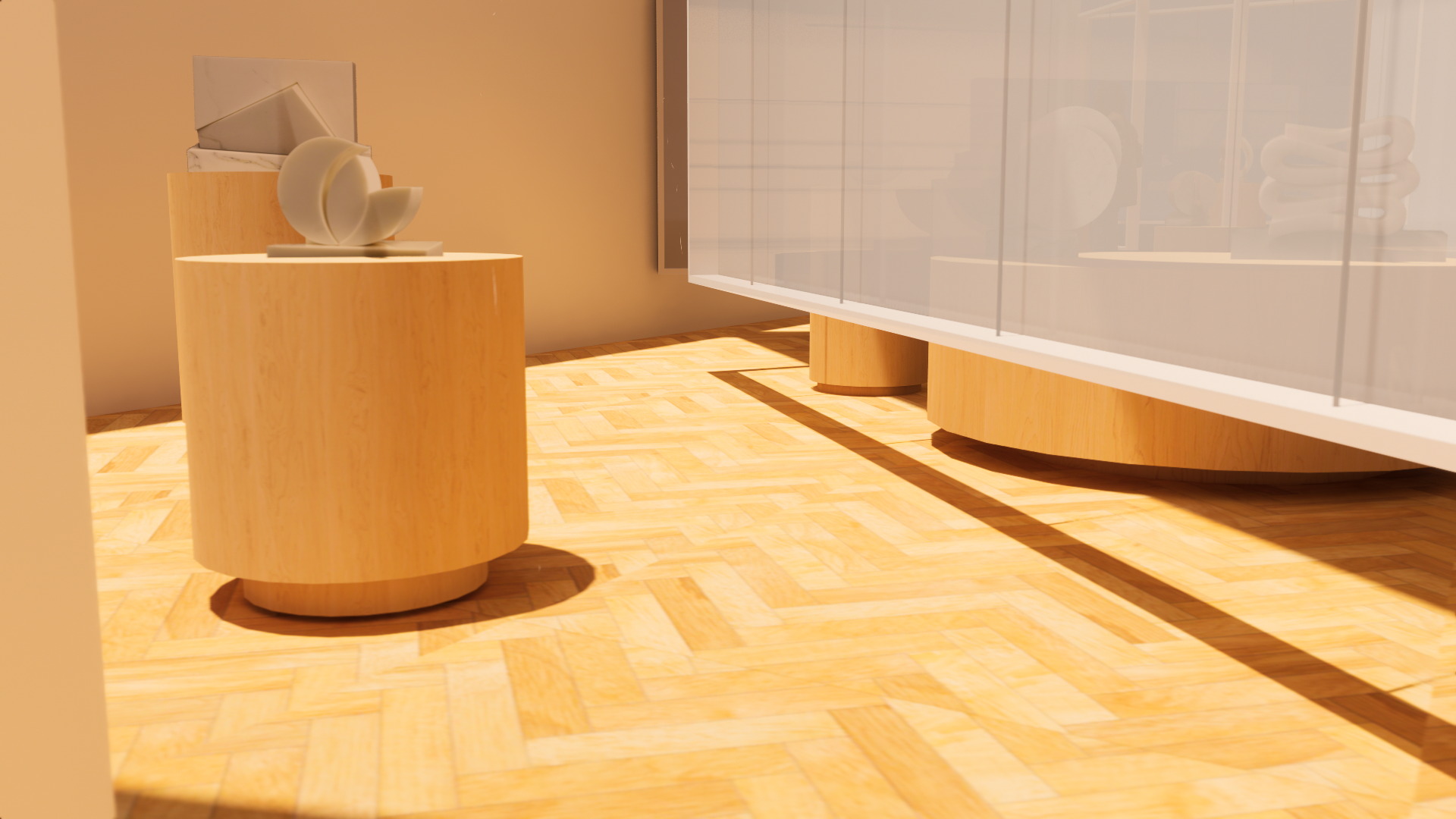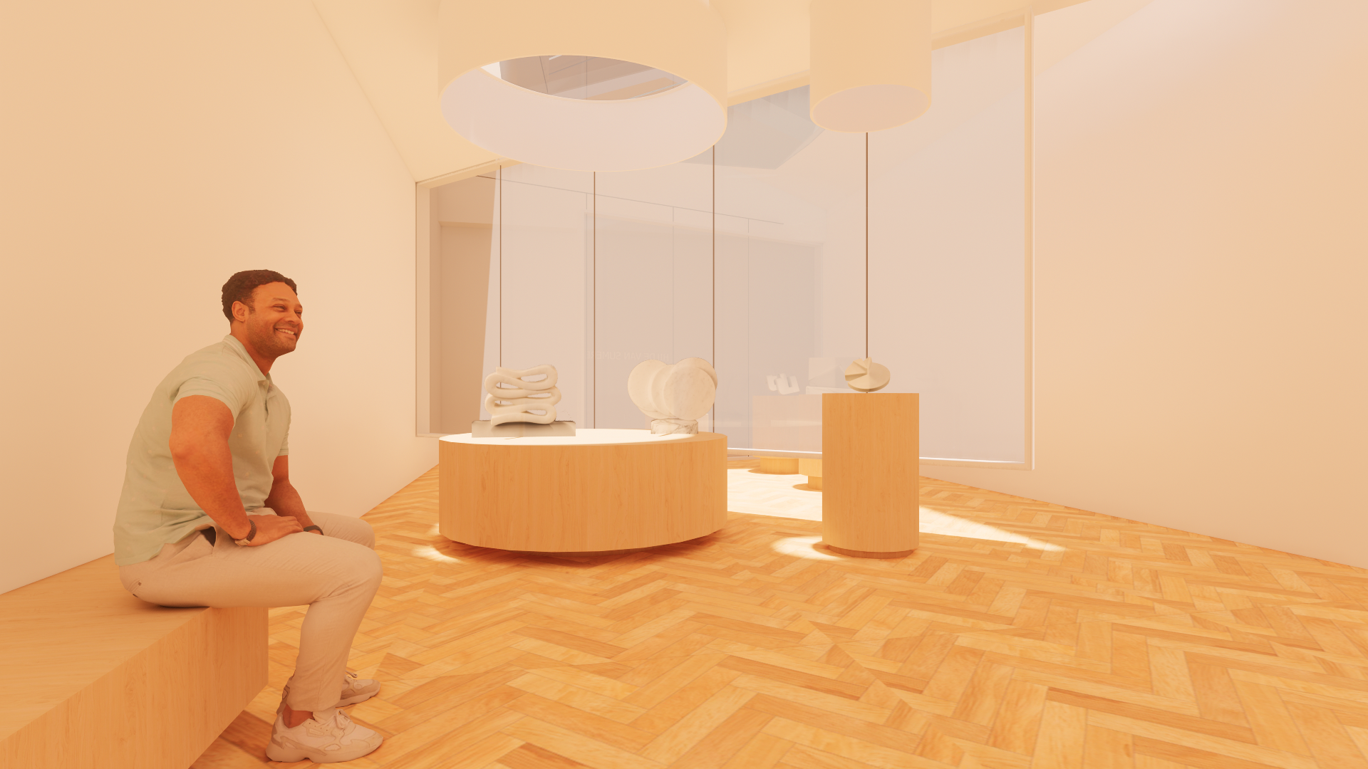 De beeldhouwwerken van Hilde van Sumere komen optimaal tot hun recht in een minimalistisch en Zen-geïnspireerd ontwerp. De expositieruimte past bij de sfeer van de werken met als thema’s rust en meditatie en bij de karakteristieke kenmerken in haar werken zoals vorm-in-vorm, geometrie, licht, keerzijde en ritme.
